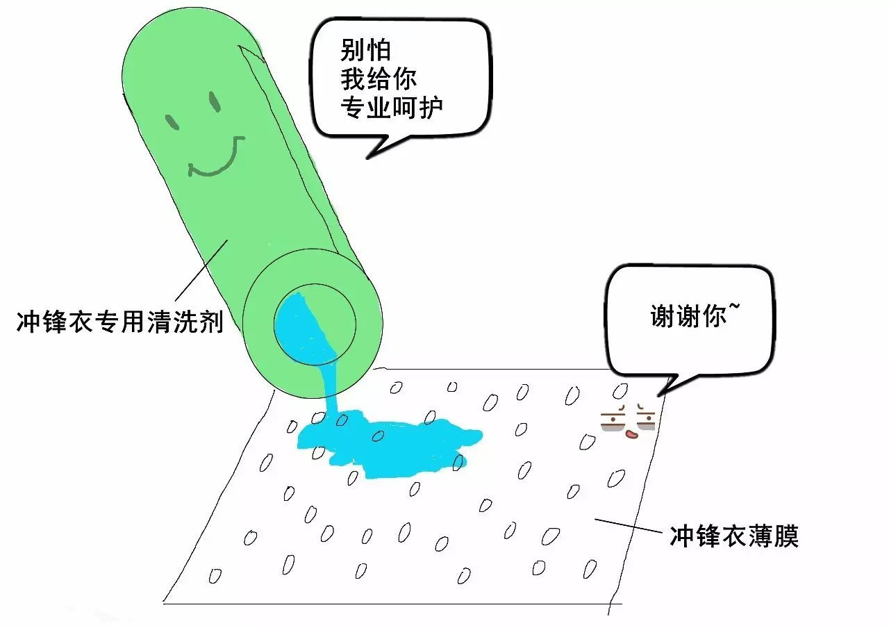 使用專業(yè)的清洗劑后,沖鋒衣可以去除堵塞薄膜的污垢。