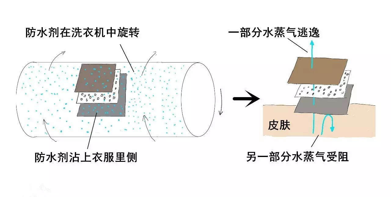 一種防水恢復(fù)方法是洗滌,即在清洗時(shí)配合沖鋒衣防水護(hù)理產(chǎn)品。但是洗滌會(huì)使防水劑進(jìn)入衣服的里側(cè),影響一部分透氣性。