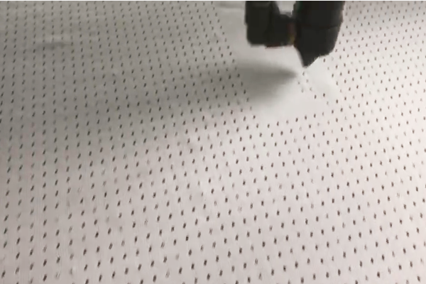 其實(shí)簡(jiǎn)單來說鐳射就是激光,激光加工技術(shù)是利用激光束與物質(zhì)相互作用的特性對(duì)材料進(jìn)行切割、表面處理、打孔、微加工等,識(shí)別物體等的一門技術(shù)。而且呢鐳射光束具有高亮度、高方向性、高單色性和高相干性四大特性,所以就給鐳射加工帶來一些其它加工方法所不具備的特性。又由于它是無接觸加工,對(duì)材料無直接沖擊,沒有機(jī)械變形;在鐳射加工過程中也無“刀具”磨損,無“切削力”,那您定制的沖鋒衣就能保持切割表面光潔美觀了;其次鐳射加工過程中,鐳射光束能量密度高,加工速度快,并且是局部加工,對(duì)非鐳射照射部位沒有影響或影響力極小。但是有的沖鋒衣的制作用鐳射機(jī)穿孔一個(gè)工序就要花上一個(gè)半多小時(shí),可以看看下面的圖片,而且我們?yōu)榱吮WC沖鋒衣的質(zhì)量以免出錯(cuò)還要專門派人看著,所以說一件沖鋒衣的制作工藝不簡(jiǎn)單!