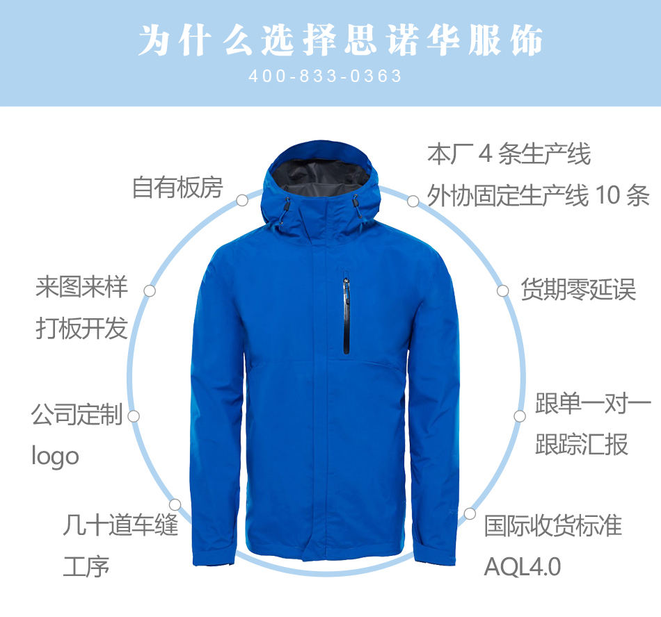 思諾華服飾—沖鋒衣生產(chǎn)廠(chǎng)家貼牌代工單層壓膠沖鋒衣