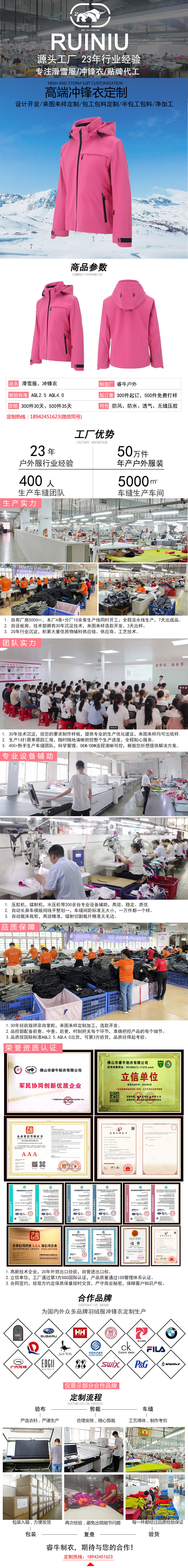 高端沖鋒衣生產(chǎn)代工廠自有板房,月產(chǎn)5萬件