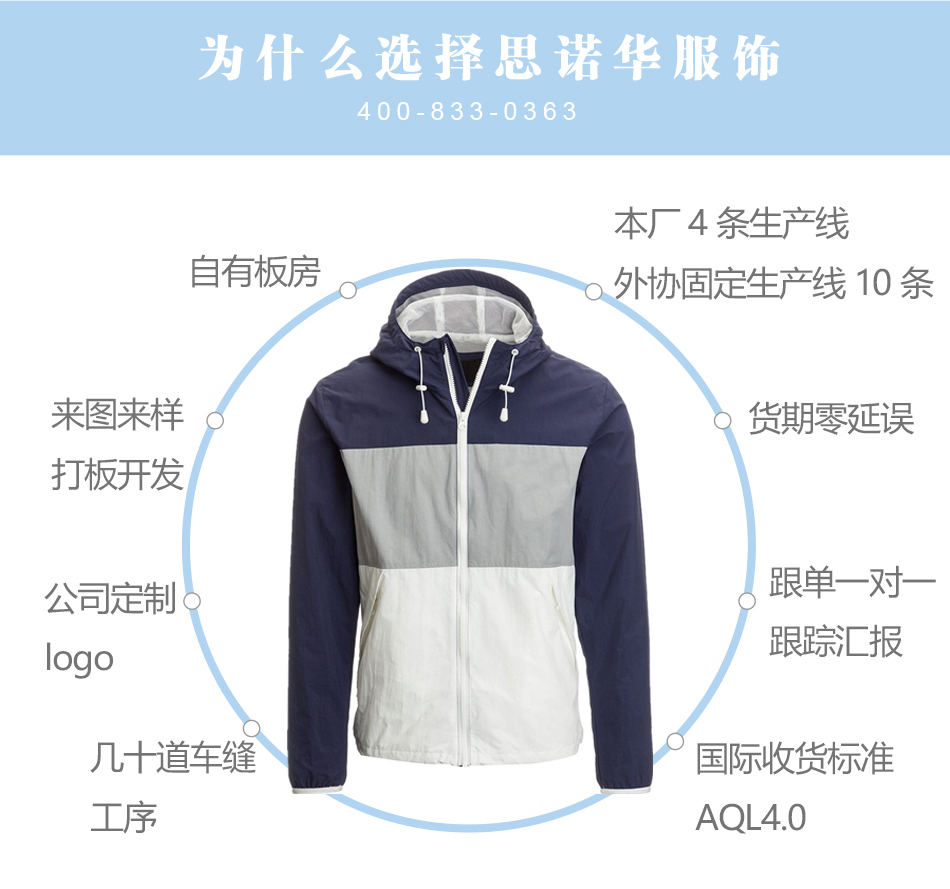 思諾華服飾—風(fēng)衣廠家來圖來樣團(tuán)體風(fēng)衣定制